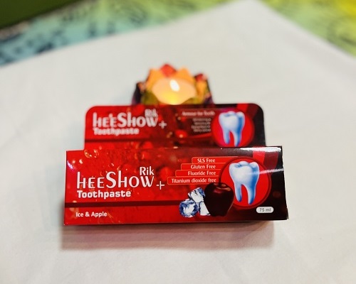 خمیر دندان هیشو ریک فاقد سدیم لوریل سولفات، فاقد فلوراید، فاقد گلوتن و فاقد تیتانیوم دی اکساید